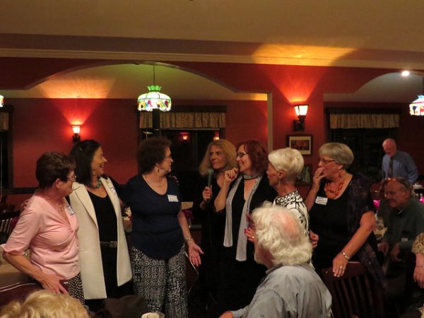 We are a remarkable group. Un-clique-ish, without isolationist tendencies, we bonded to one another for the three days we visited – Thursday night dinner in a restaurant that was nonexistent when we lived there, Friday night dancing at the Moose Hall, Saturday morning gathering at our high school no longer a high school for a tour and a video journey through our town, Saturday afternoon attendance at the homecoming football game, and Saturday night feasting and blending our voices with the karaoke in songs we sang as youngsters. It was glorious.